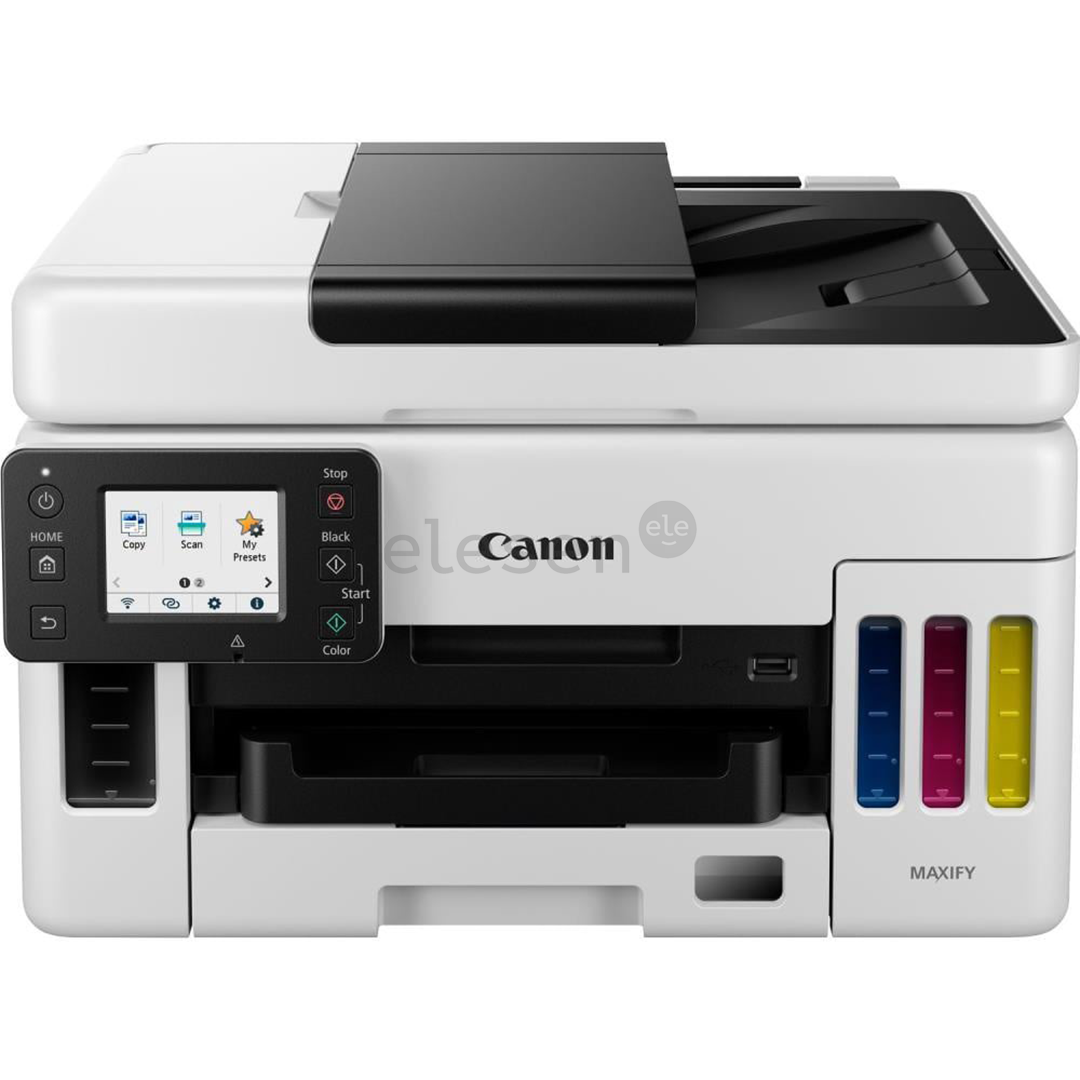 Canon MAXIFY GX6050 is a high-efficiency, refillable ink tank printer designed for small and medium-sized businesses. Offering low running costs, high yield, and versatile functionality, it's perfect for those needing reliable, high-quality printing solutions. Features include fast print speeds, Wi-Fi connectivity, and the ability to print up to 6,000 pages in black and white or 14,000 pages in color from a single set of ink bottles.
