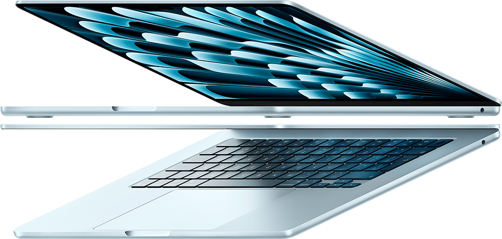 13 colių ir 15 colių „MacBook Air“ ekranų kampai yra užapvalinti viršuje. Matuojant kaip taisyklingą stačiakampį, ekranų įstrižainė yra 13,6 colio ir 15,3 colio (faktinė peržiūros sritis yra mažesnė).