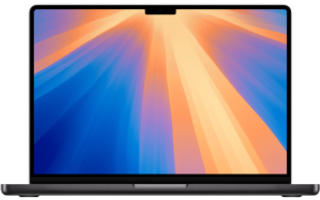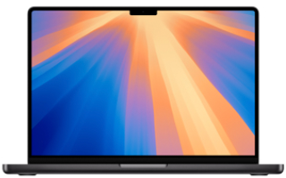 14 colių ir 16 colių „MacBook Pro“ ekranų kampai yra užapvalinti viršuje. Matuojant kaip taisyklingą stačiakampį, ekranų įstrižainė yra 14,2 colio ir 16,2 colio (faktinė peržiūros sritis yra mažesnė).