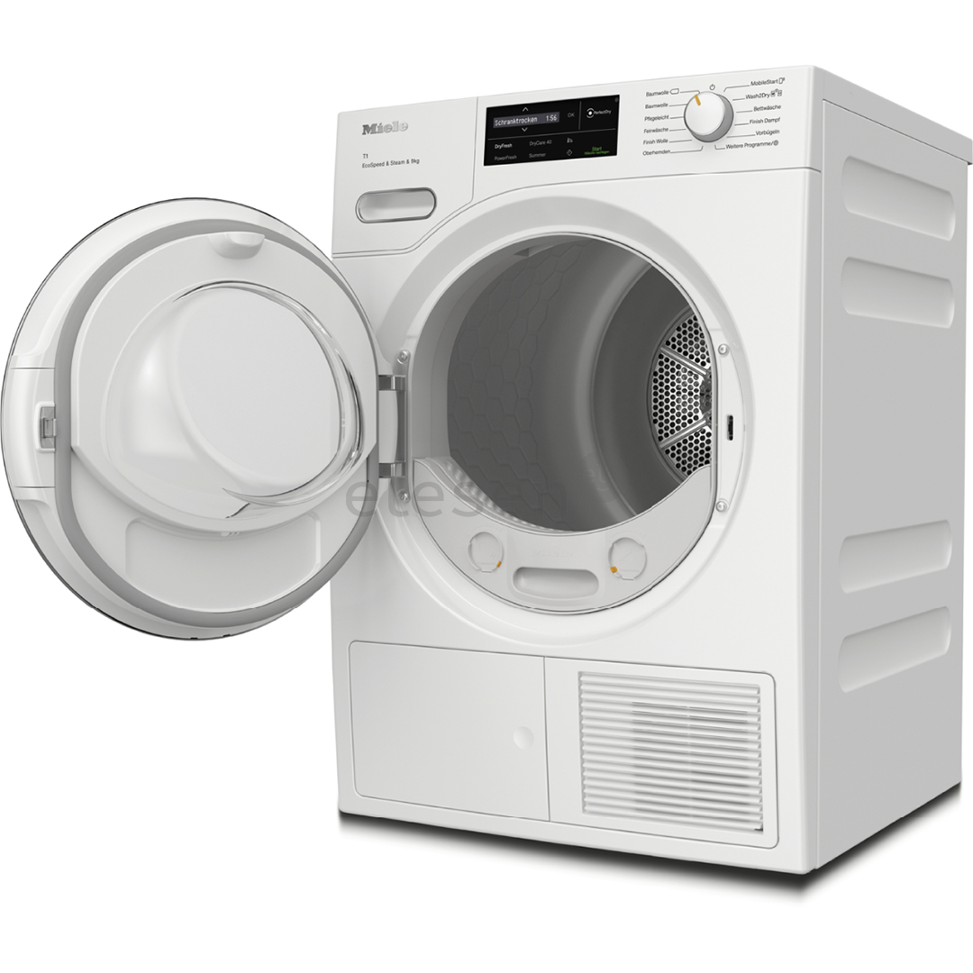 Miele išmanusis pūkų filtras leidžia lengvai pašalinti susikaupusius pūkus, užtikrinant švarius skalbinius. Kai ekrane pasirodo priminimas „Išvalykite oro kanalus“, filtrą galima greitai išimti iš priekio. Dėl lygios filtro struktūros jį lengva valyti, o skalbiniai visuomet lieka be pūkų.