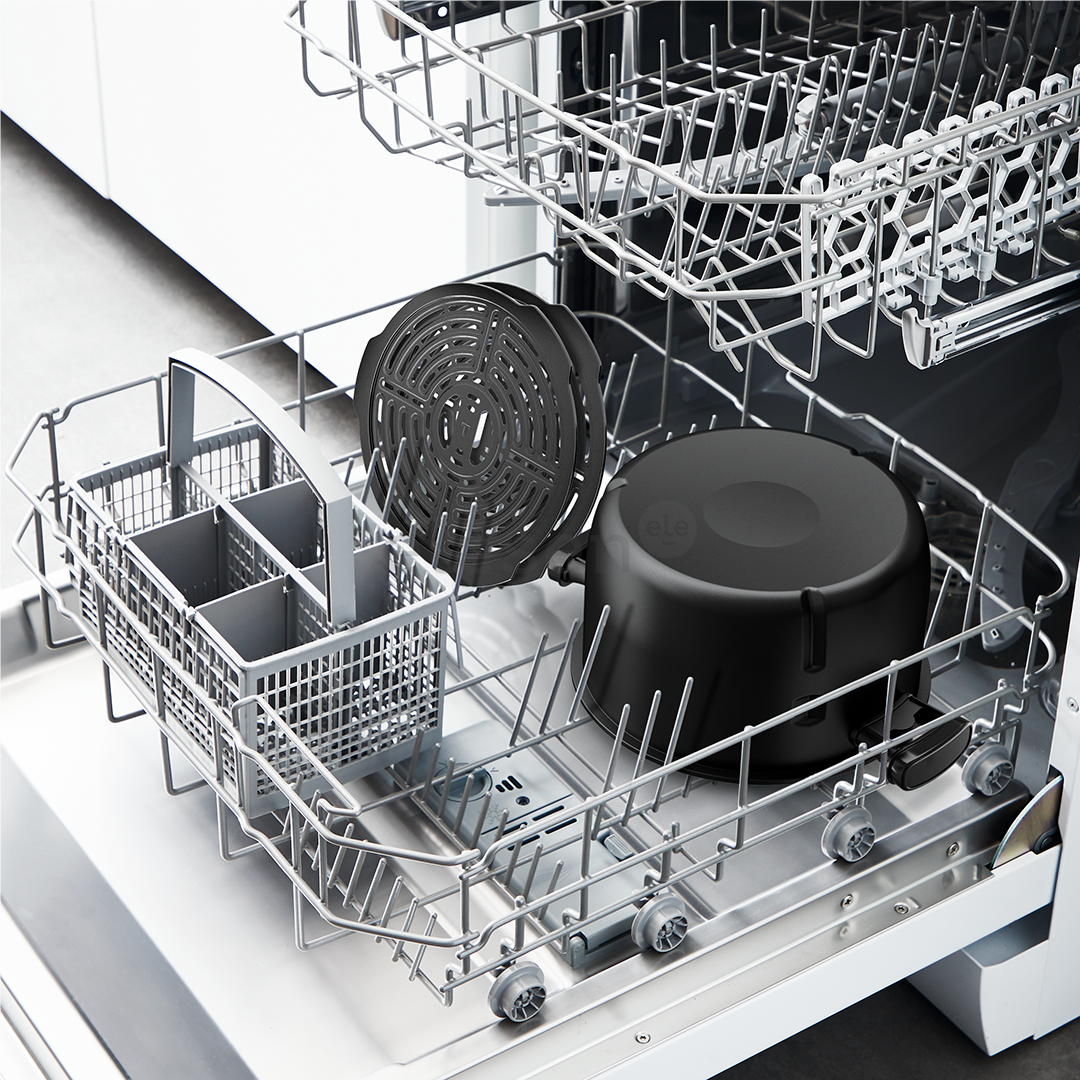 Наслаждайтесь удобством и практичностью, включая аксессуары, которые можно мыть в посудомоечной машине - такие как антипригарная керамическая чаша с двумя ручками.