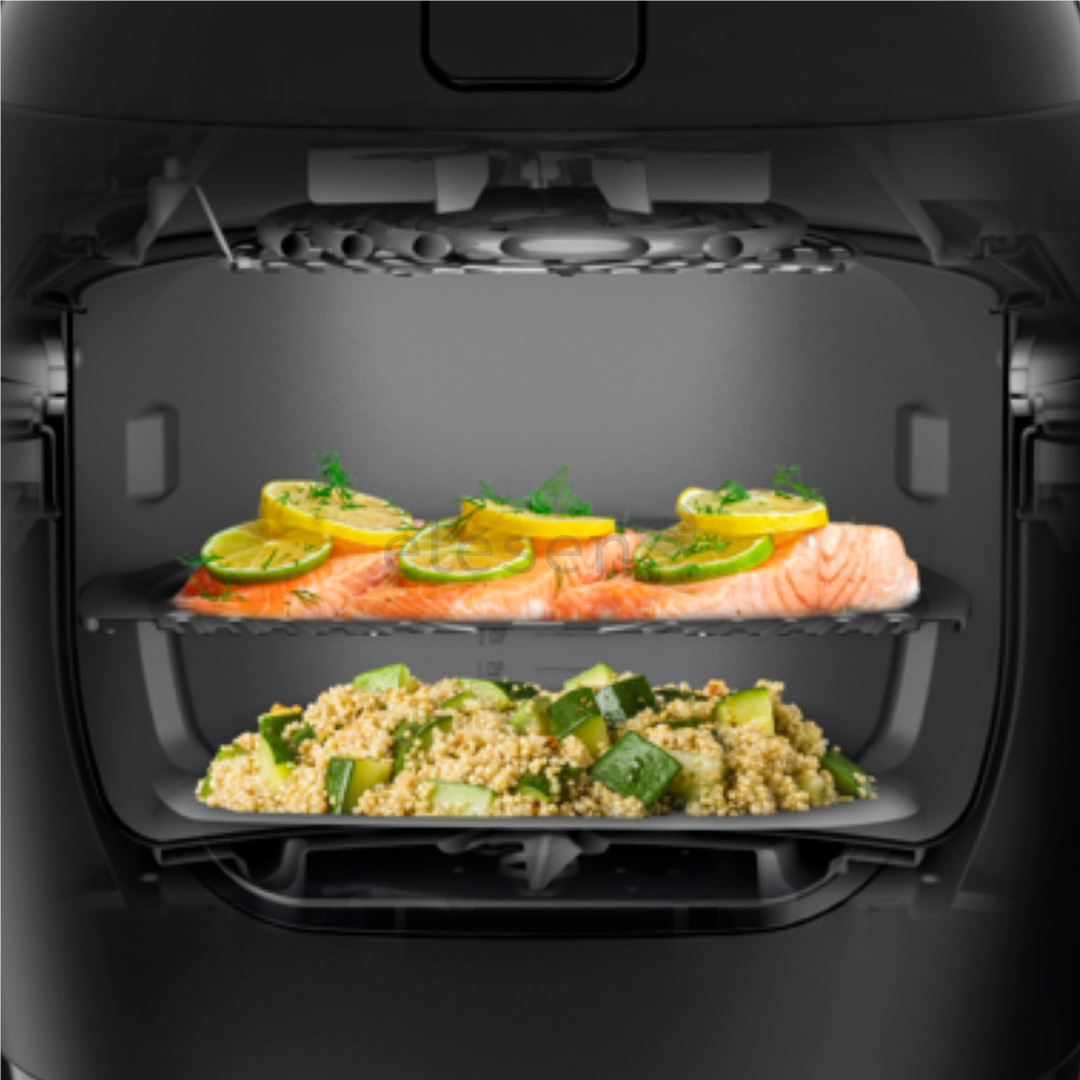 • Полноценный обед: приготовьте полноценный обед благодаря многоуровневой жарочной панели, которая позволяет готовить разные ингредиенты (например, лосось и киноа) одновременно